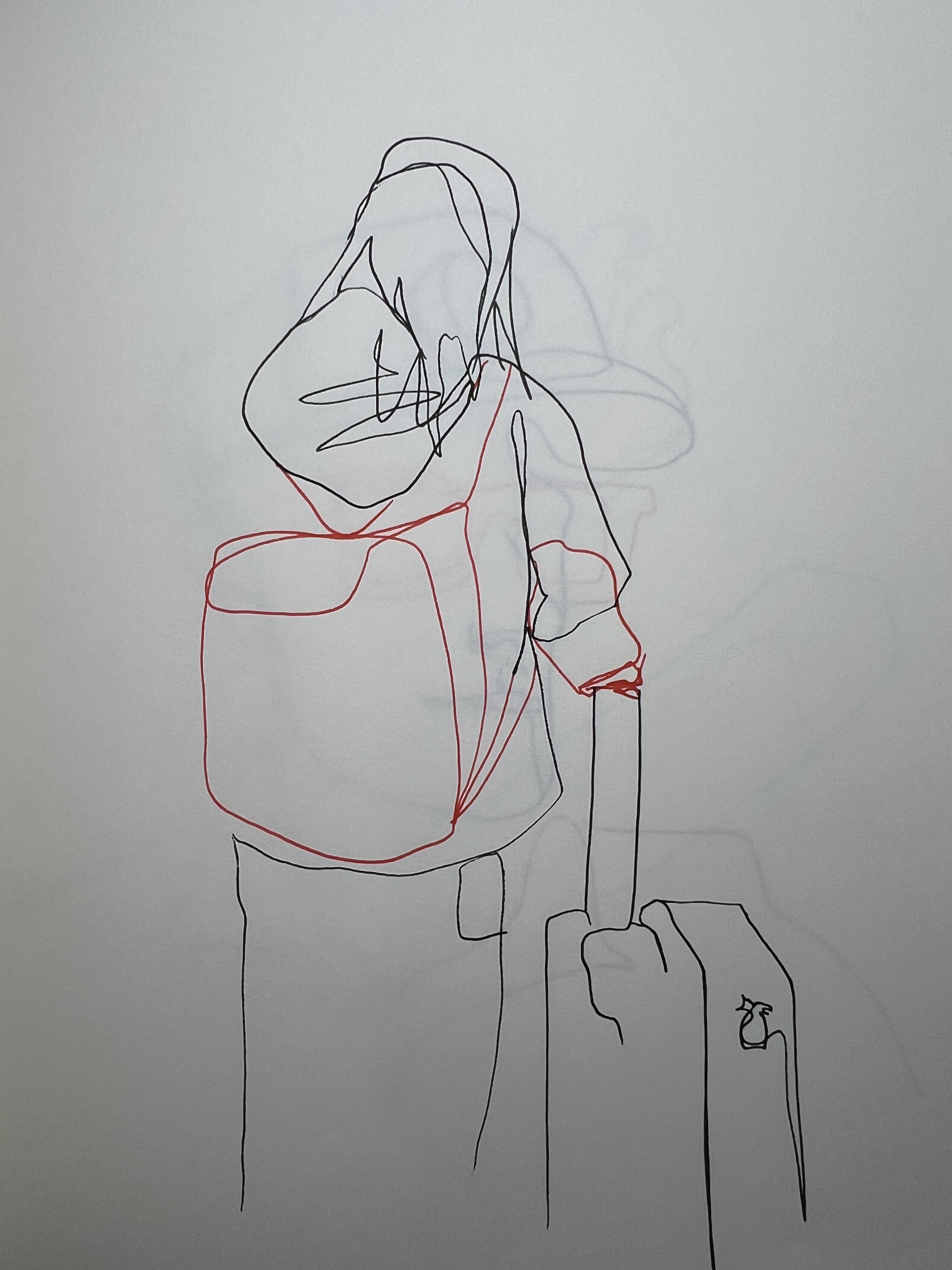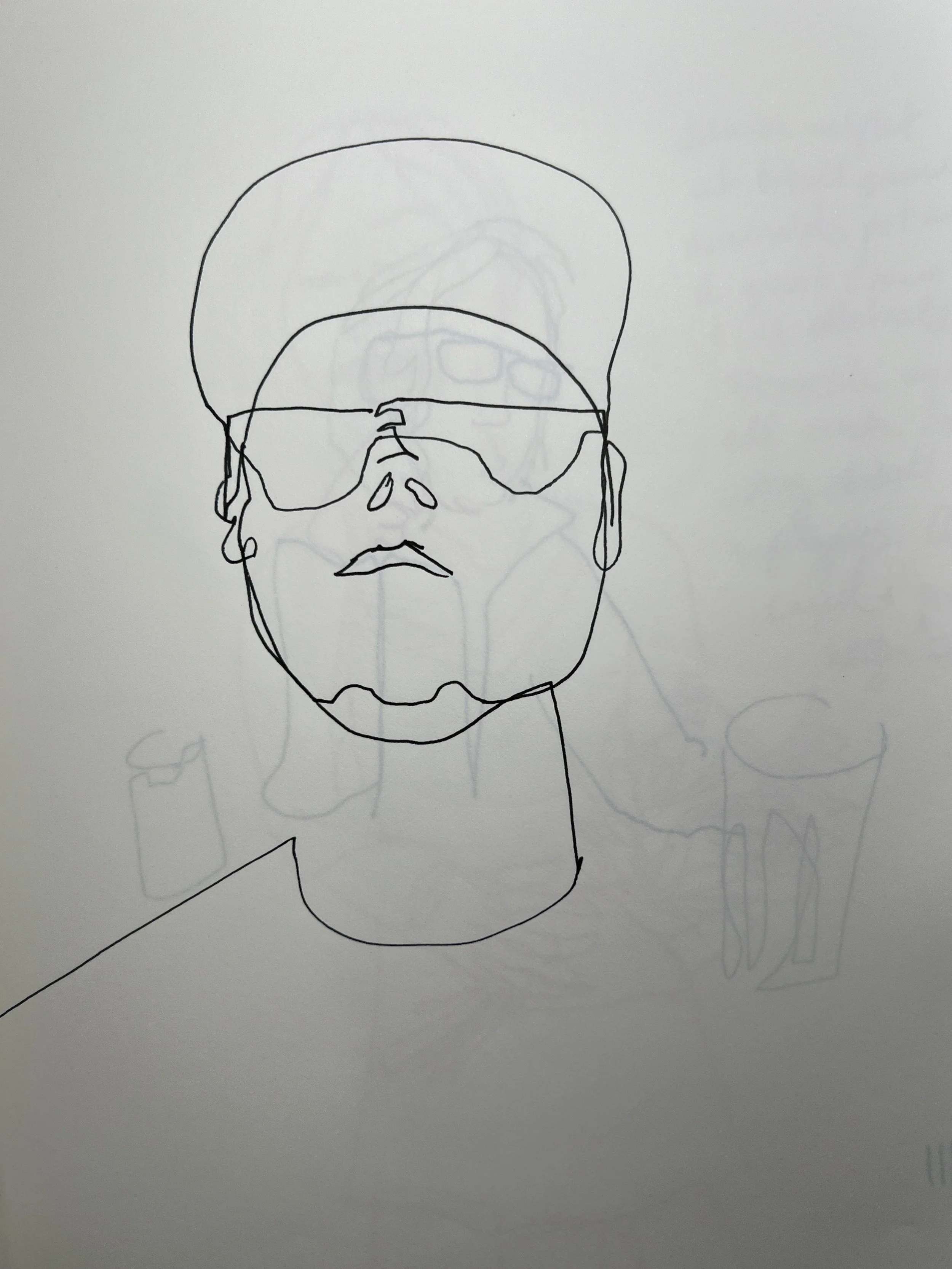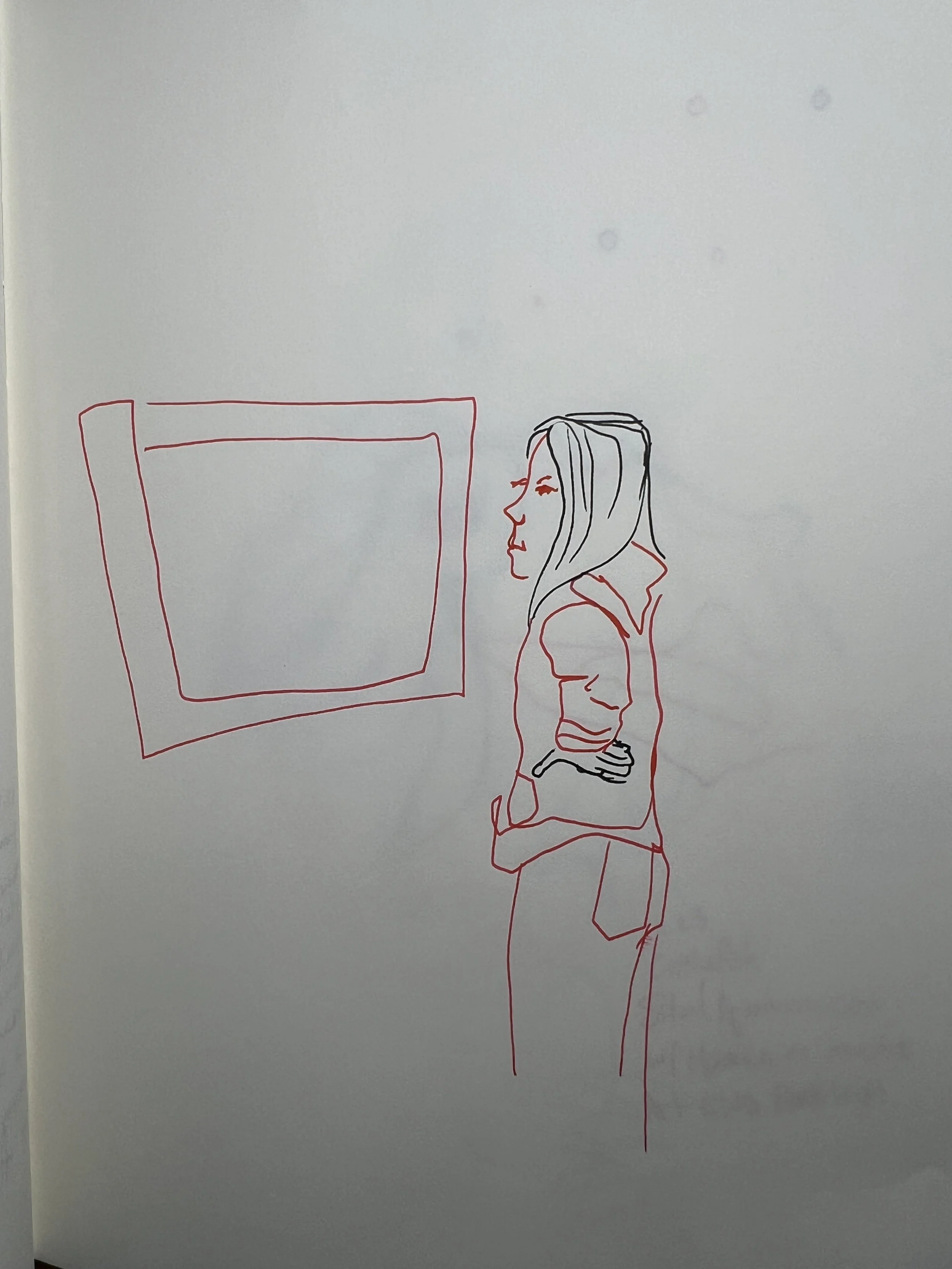 When I’m out in the world and want to capture ideas, people, places or things, I love to do quick blind contour drawings in my journal. It helps me study the subject without worrying too much about the artistic execution. It’s a freeing process.. I can fill up a sketchbook pretty quickly. Some subjects I come back to later and do another entry, this time with color and notes. Below is a mix of some journal entries from 2023 actives and observations. I also take my watercolor set when I can’t travel with ink and do some other types of studies in thinking through larger pieces. One of the most different things I did was a watercolor and ink map of the island of Aruba and marked all the great things me and my family explored while there. This illustration is in the guestbook left behind at the place we stayed.